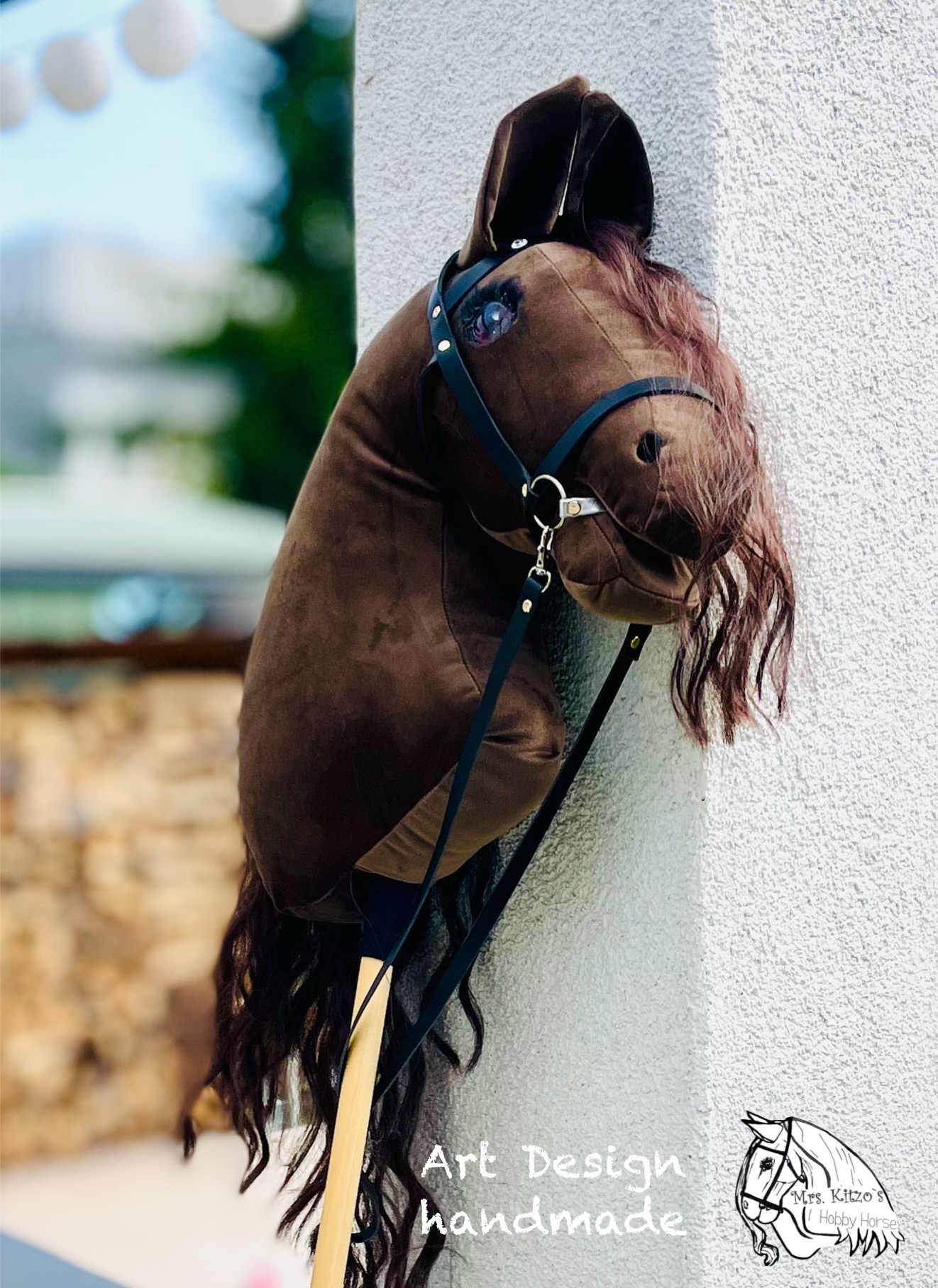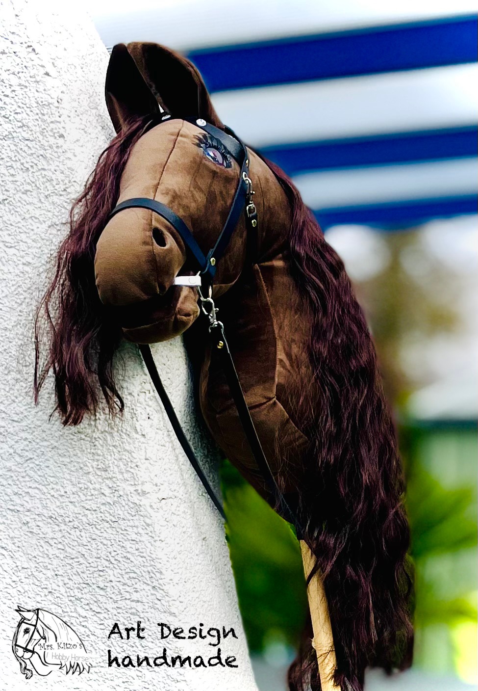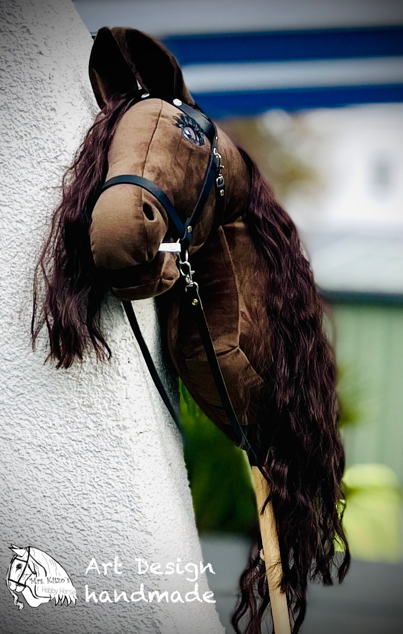 Hobby Horse *AMIGA* besitzt eine wunderbare braune, lockige Mähne zum Flechten und schaut mit ihren wunderschönen, dunklen Glasaugen durch Ihre Welt.