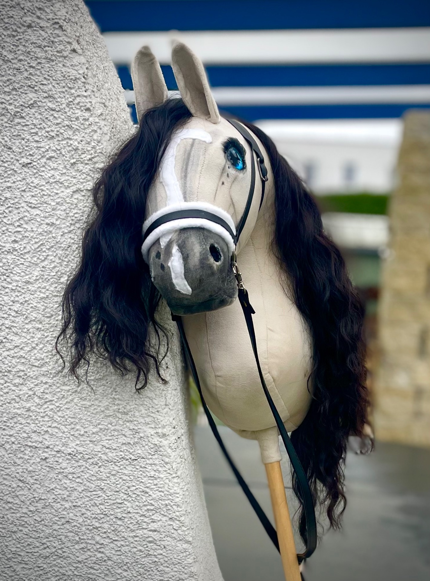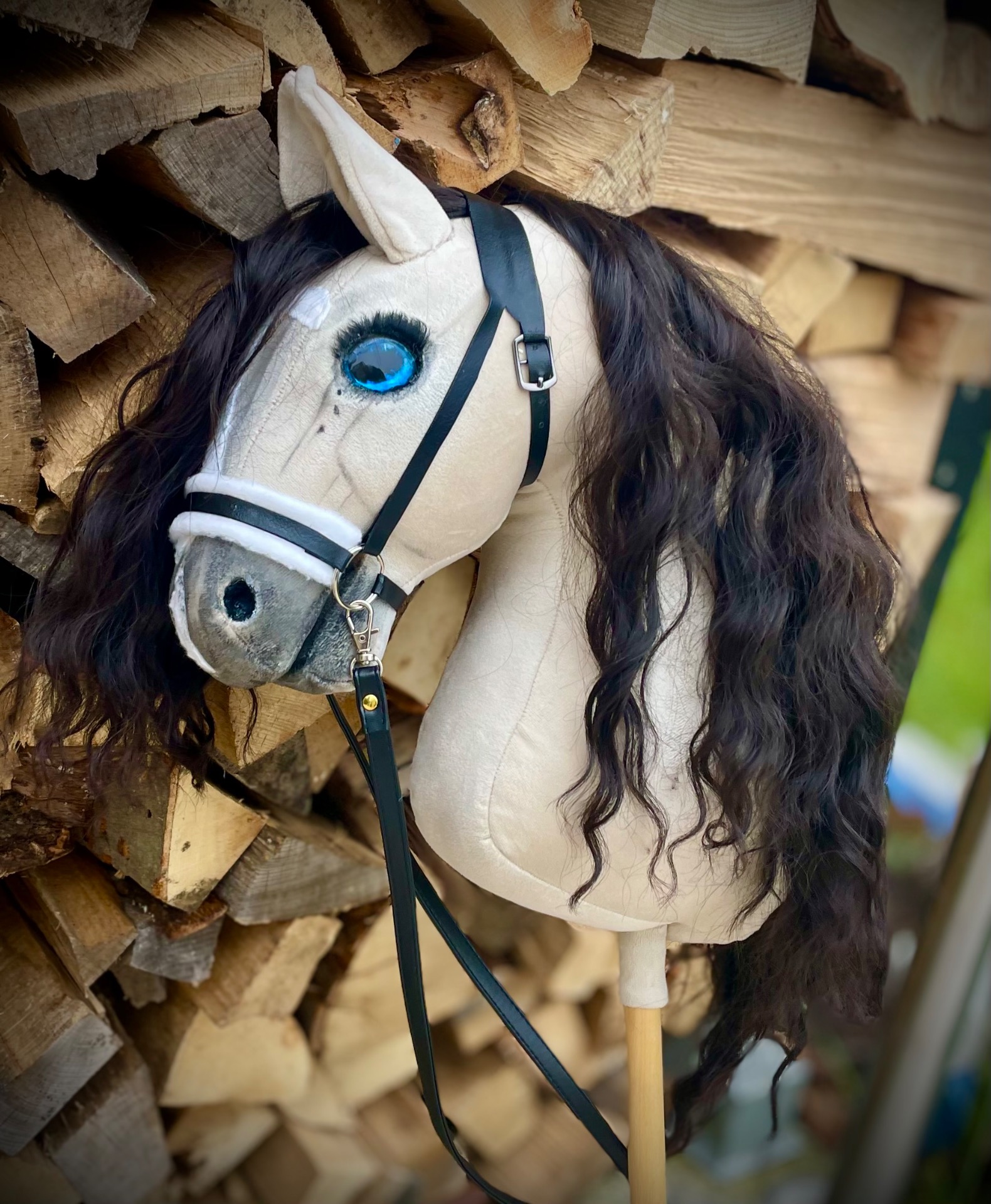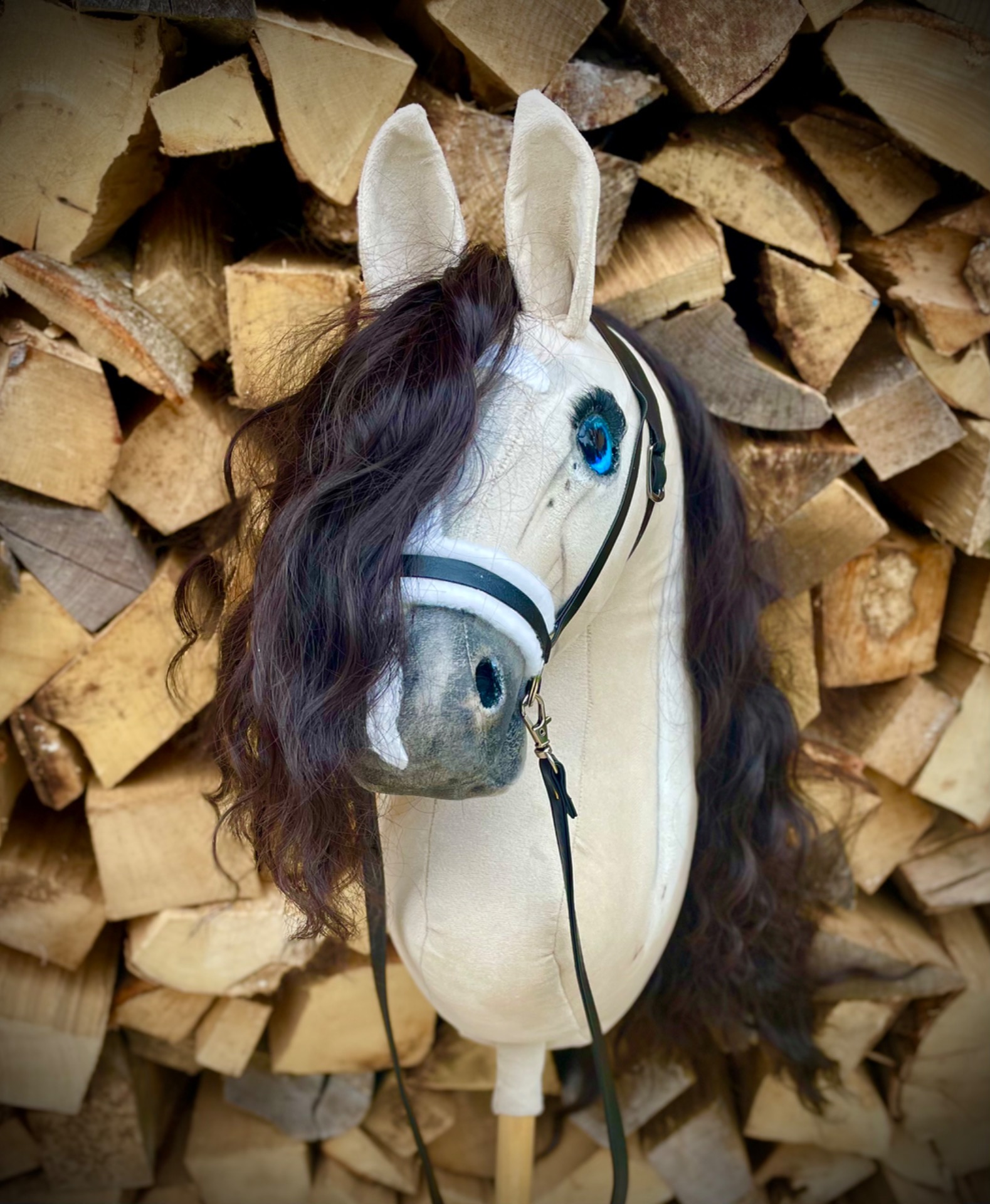 Hobby Horse *HAILEY* besitzt eine lange Mähne zum Flechten und schaut mit wunderschönen Glasaugen durch die Welt.
