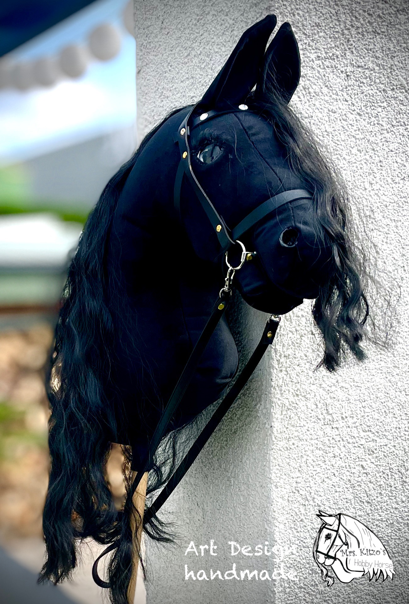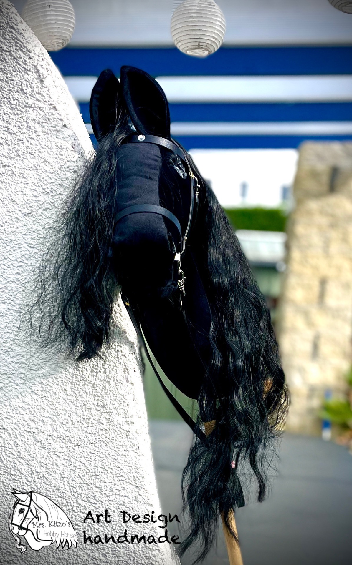 Hobby Horse *LUNA* besitzt eine wunderbare schwarze, lockige Mähne zum Flechten und schaut mit ihren wunderschönen, blauen Glasaugen durch Ihre Welt.