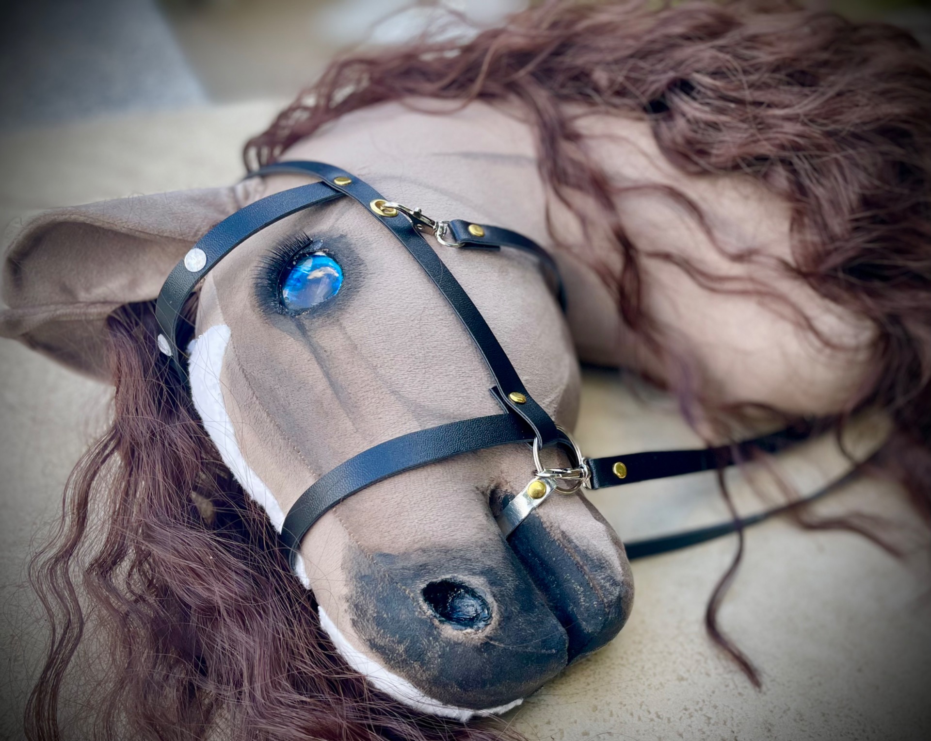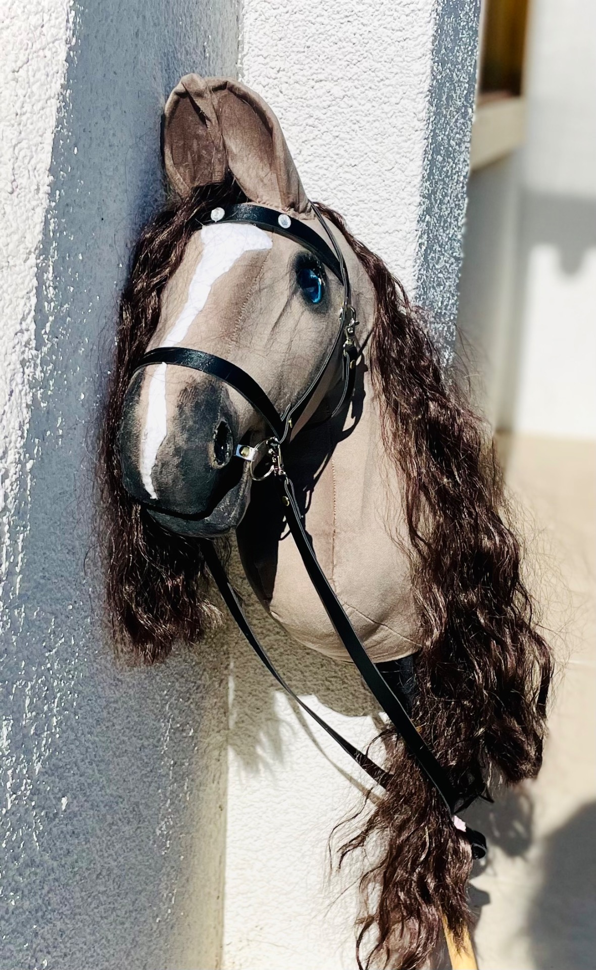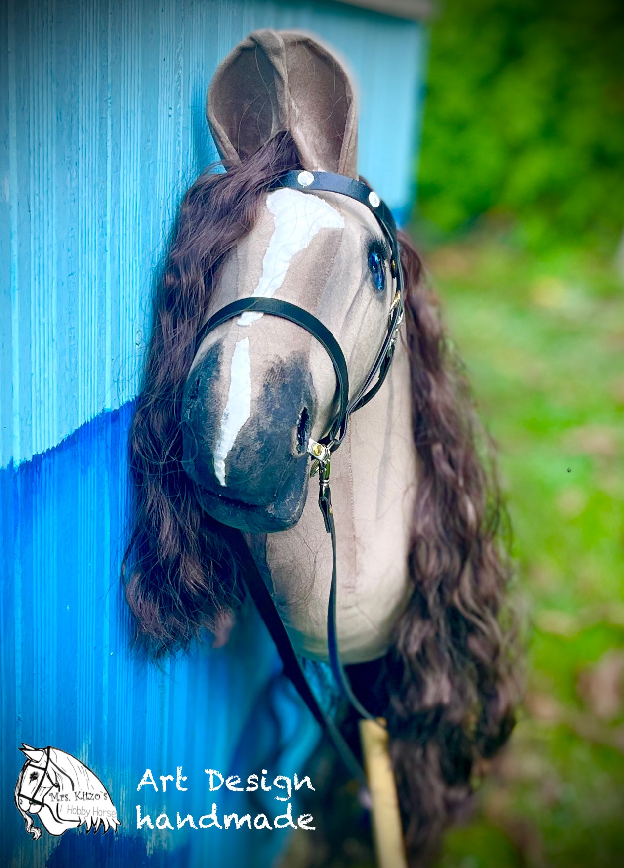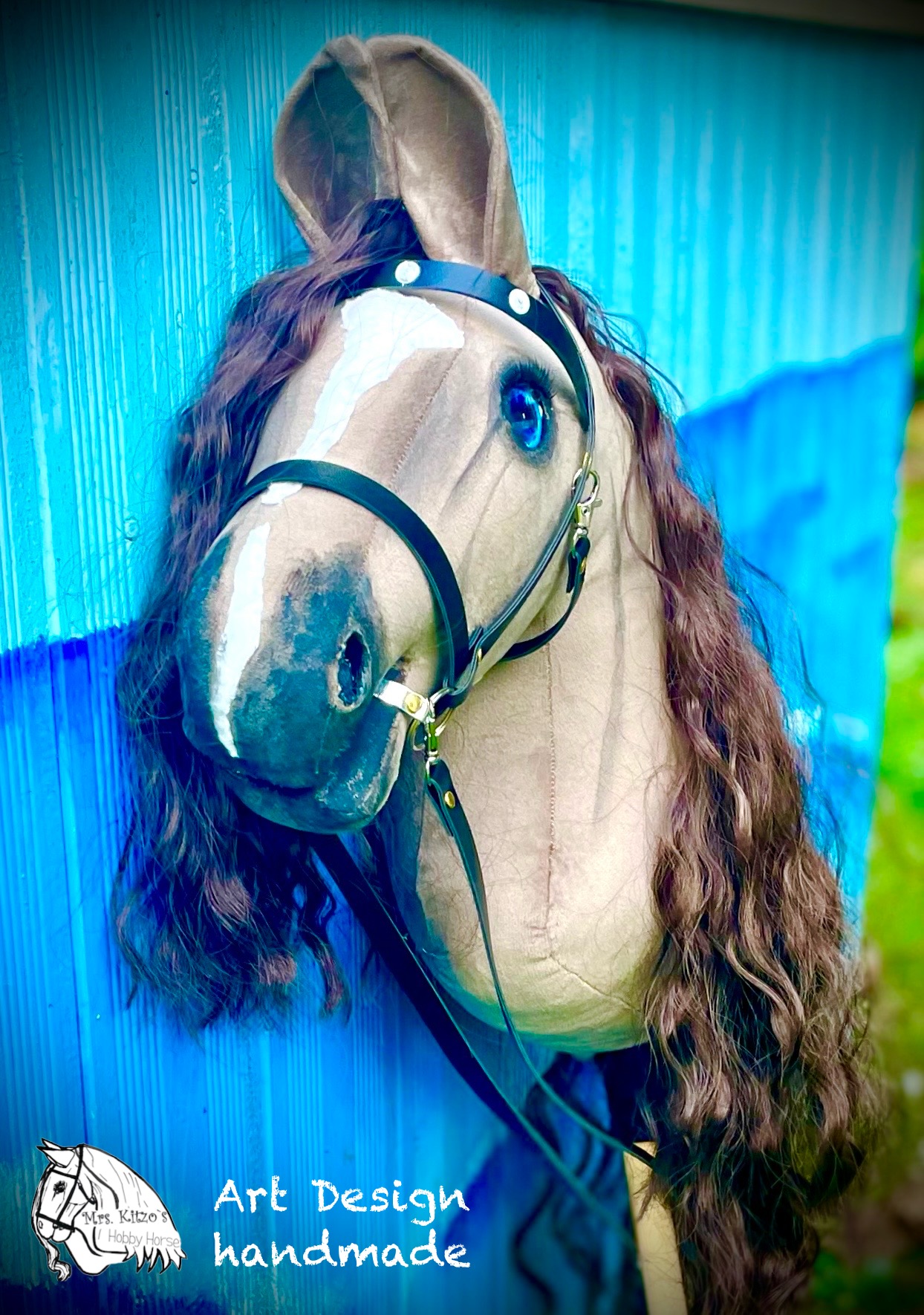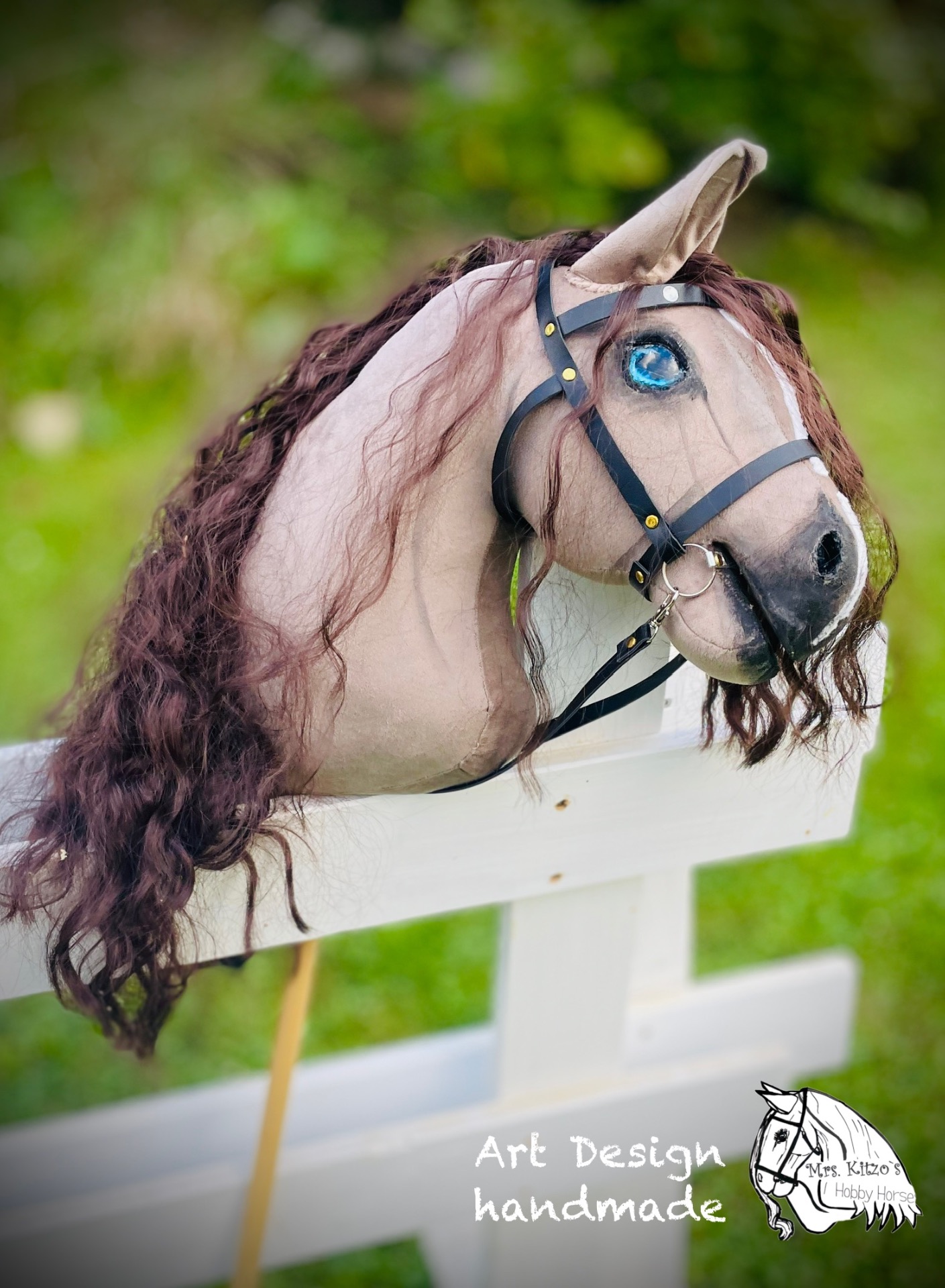 besitzt eine wunderbare braune, lockige Mähne zum Flechten und schaut mit ihren wunderschönen, blauen Glasaugen durch Ihre Welt.