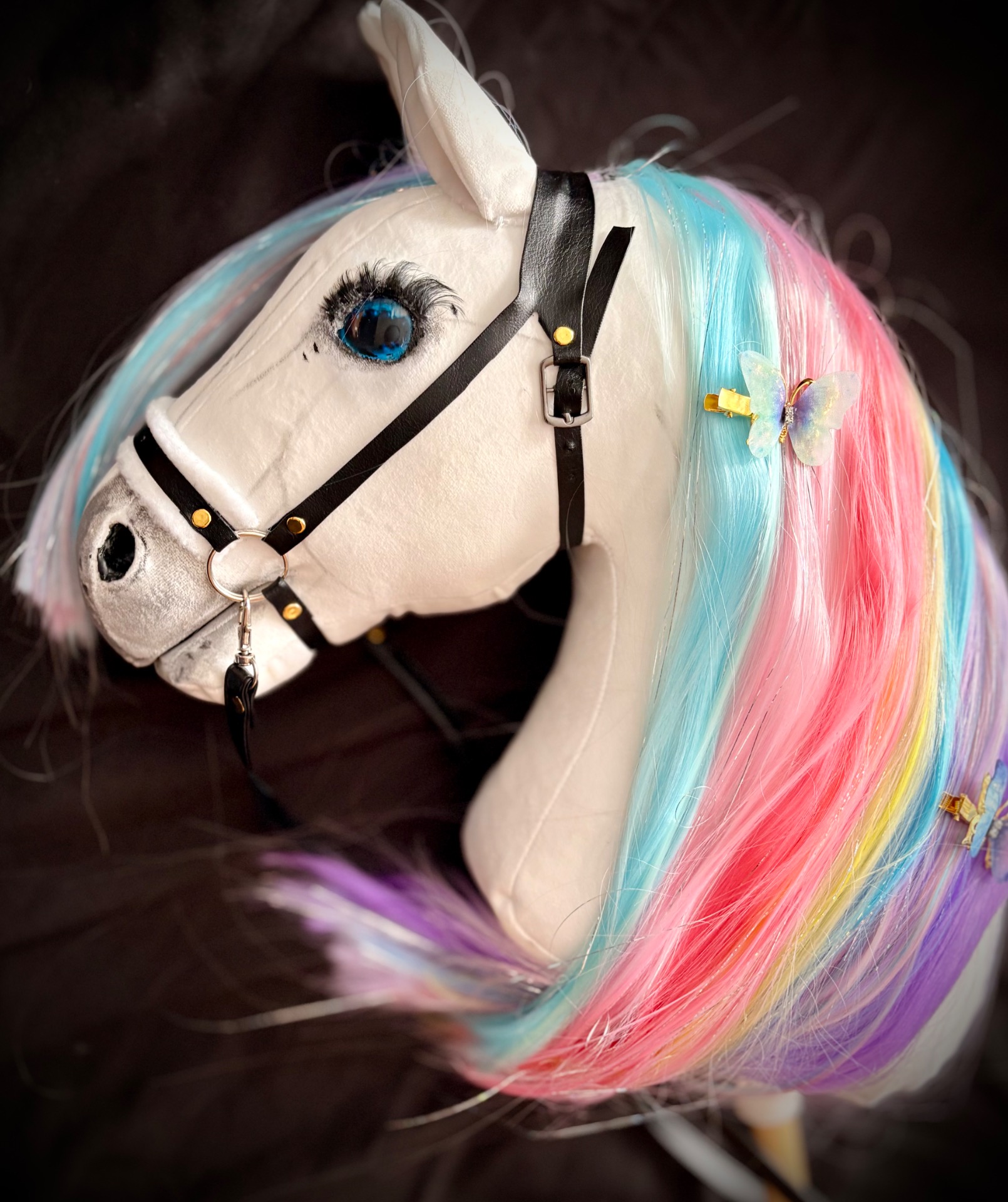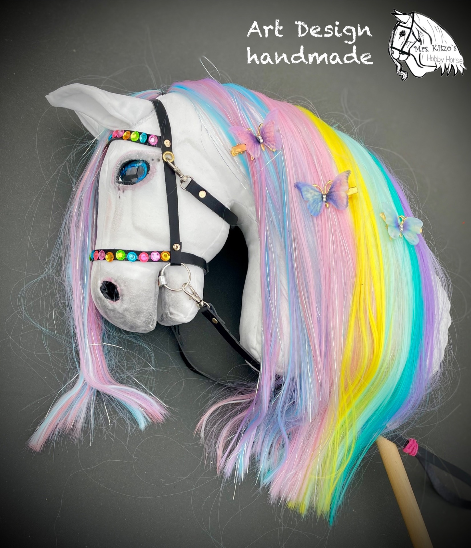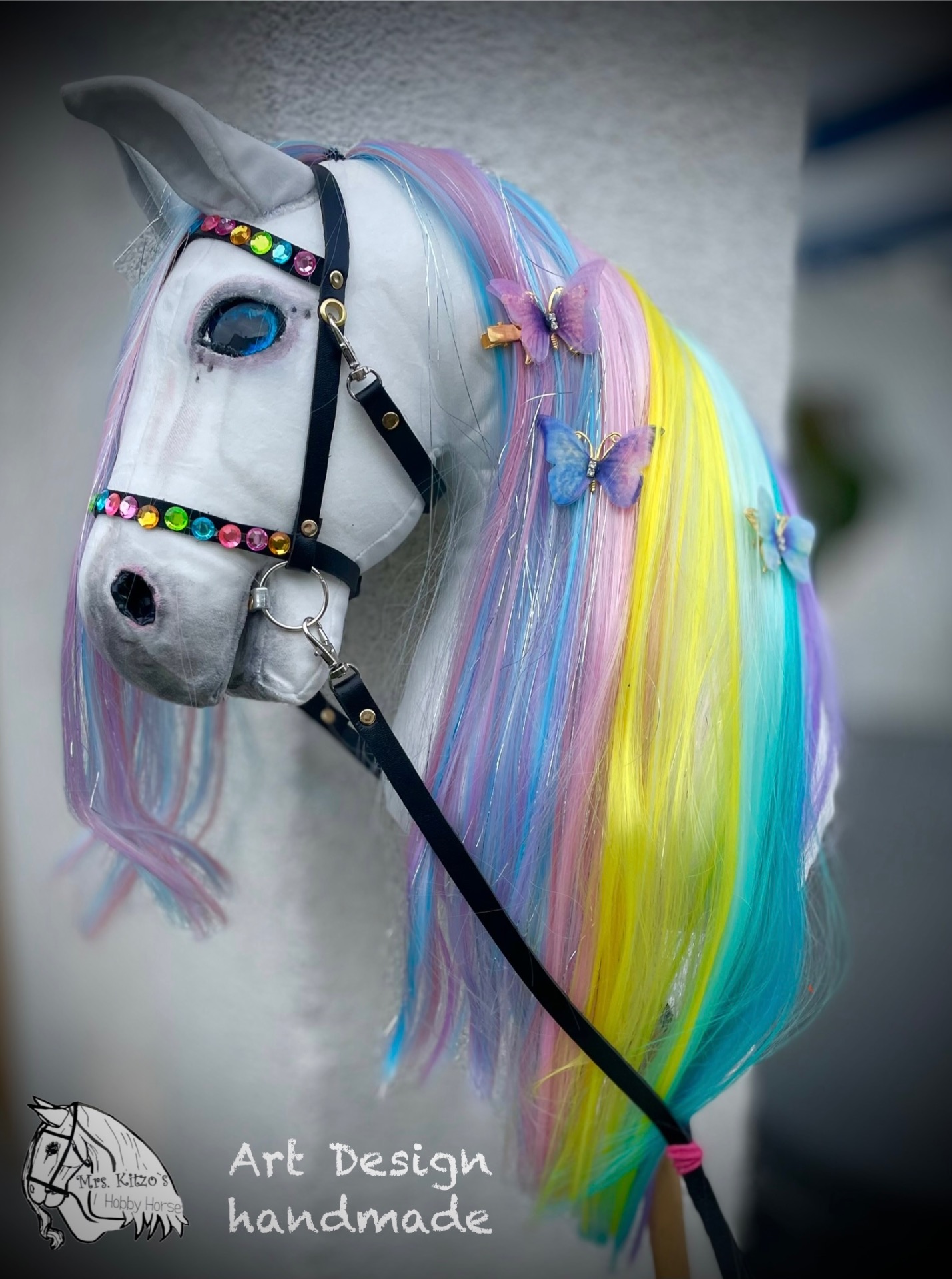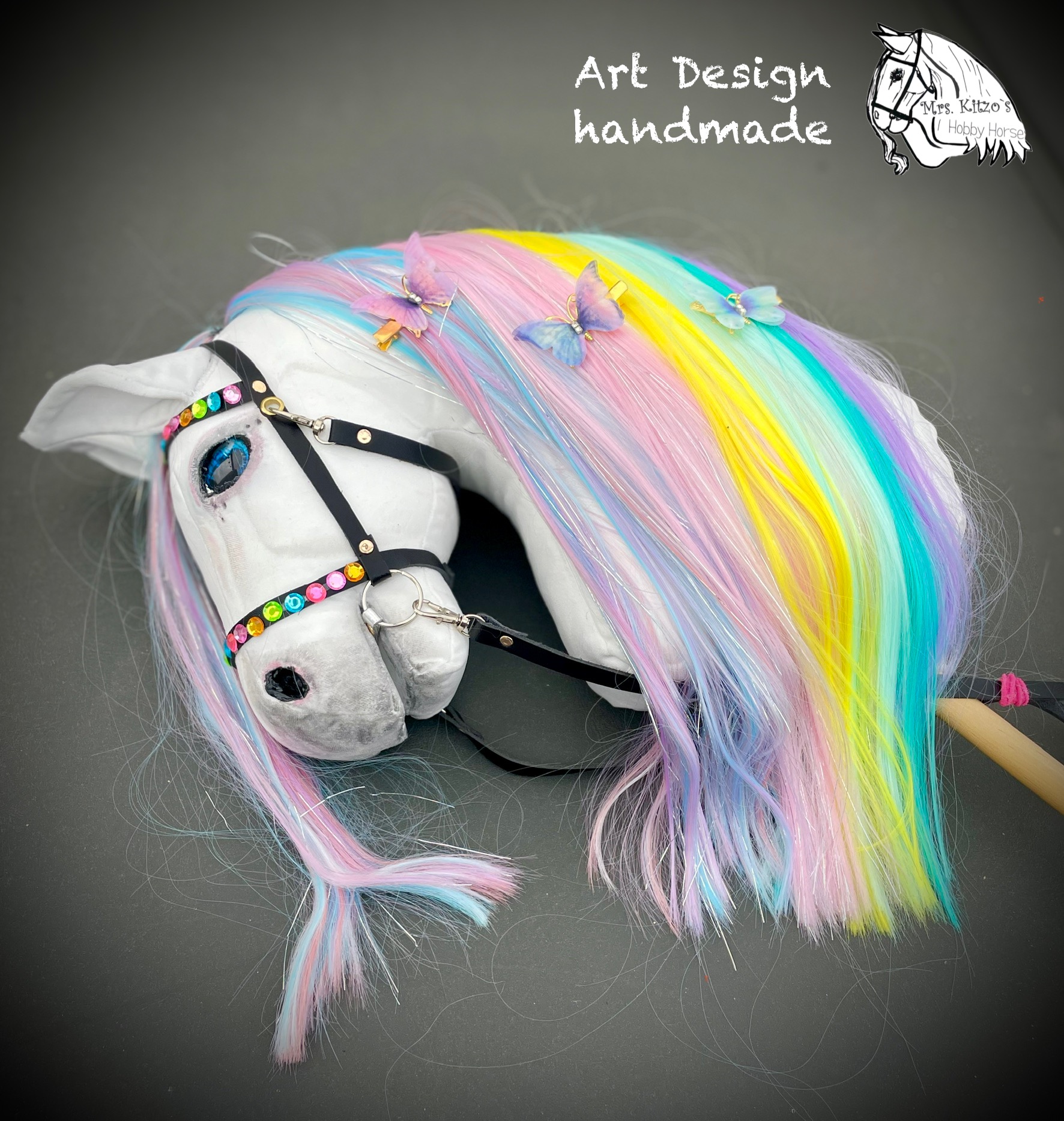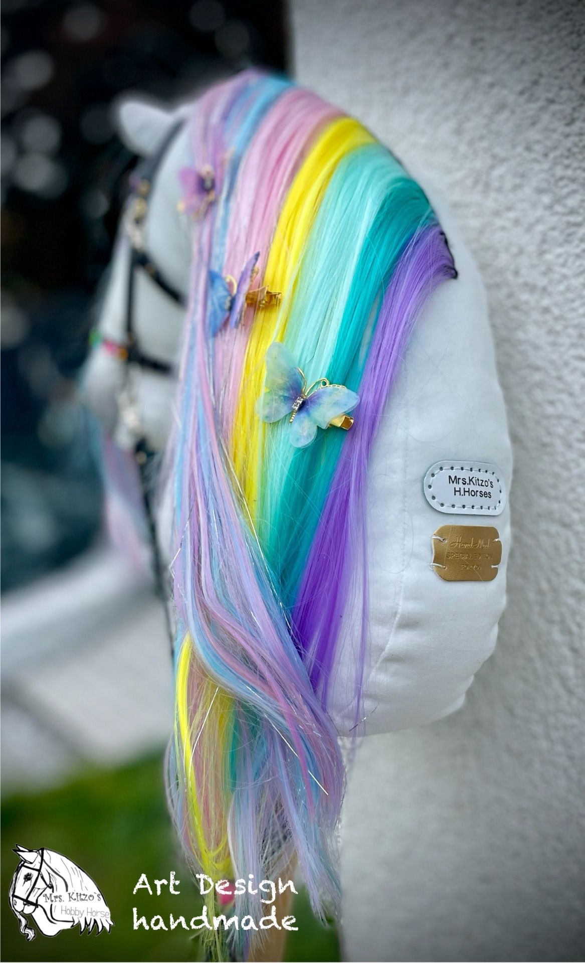 Dieser zauberhafte Pferd hat eine wunderbare Mähne, farbenfroh wie ein Regenbogen, zusätzlich perfektioniert noch mit Glitzerfäden.