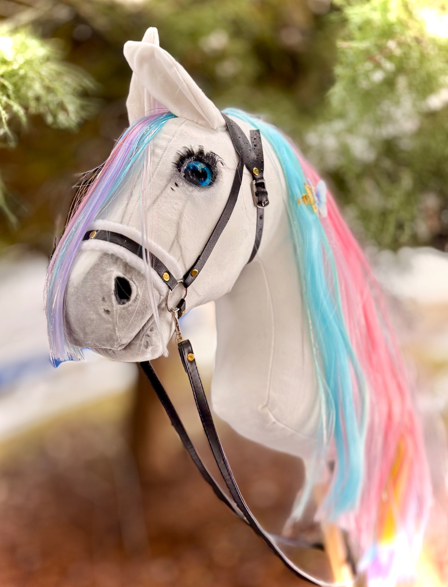 Durch die ergonomisch, sportliche Form bietet dieses tolle ,kunterbunte Hobby Horse' eine optimale Gewichtsverteilung und ist deshalb super auch zum Springen oder auch für noch kleinere Reiterinnen geeignet.